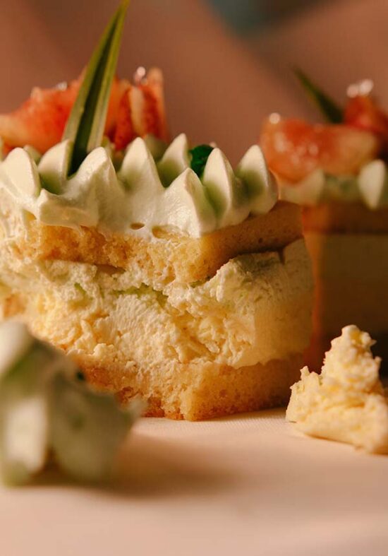 $18Cheese mousse, hazelnut & chocolate snow, strawberry, lemon gel.